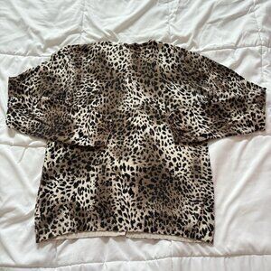 Vintage 90s Y2K Retro August Silk Cheetah Print Cardigan Womens Brown Coquette