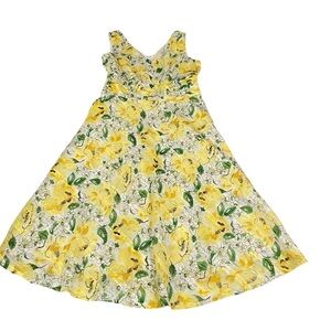 Vintage 90s Y2K Robbie Bee Yellow Floral A-Line Dress 8P