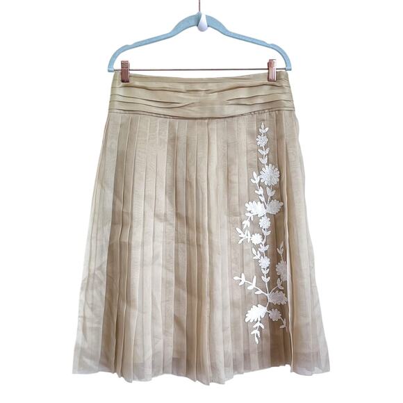 Vintage 90s Y2K Robert Rodriguez Silk Pleated Skirt Size 8 Tan Fairy Chiffon