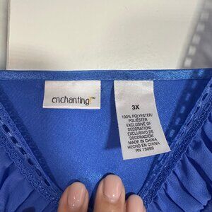 Vintage 90's Y2K Satin Sapphire Blue Babydoll Slip-Dress or Nightgown 3X