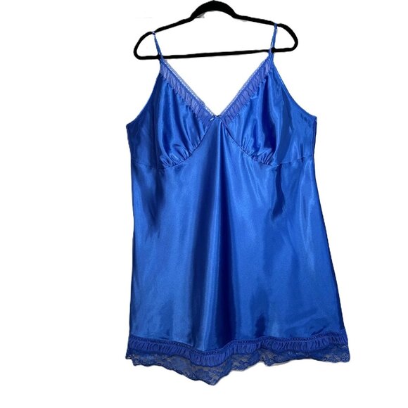 Vintage 90's Y2K Satin Sapphire Blue Babydoll Slip-Dress or Nightgown 3X