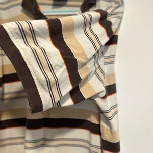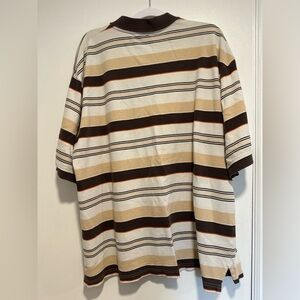 Vintage 90s Y2K South Pole Sz: 3XL Tan & Dark Brown Striped Short Sleeve Polo.