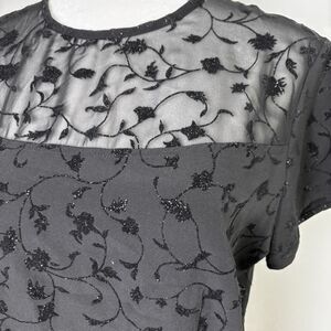 Vintage 90s Y2K Sparkly Dark Romantic Whimsygoth Fairy Black Top Sheer Panel