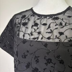 Vintage 90s Y2K Sparkly Dark Romantic Whimsygoth Fairy Black Top Sheer Panel
