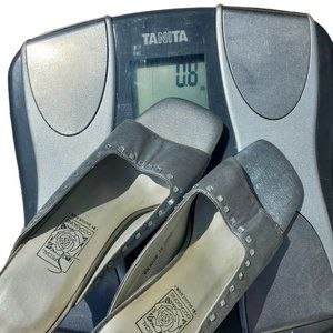 Vintage 90s Y2K Special Occasions by Saugus Shoe Silver Dyed Sandal Heel Mules