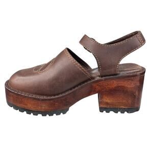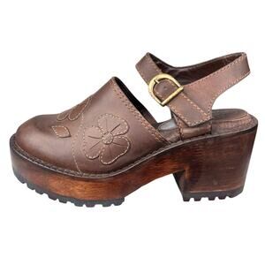 Elevate your vintage game with these Steve Madden Y2K clogs. Featuring a brown leather flower design, these clogs are perfect for women who want to add a touch of flair to their wardrobe.