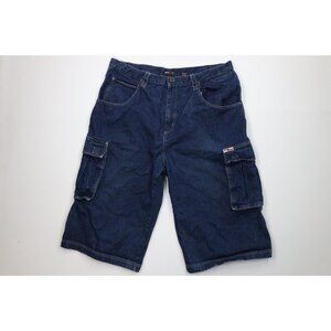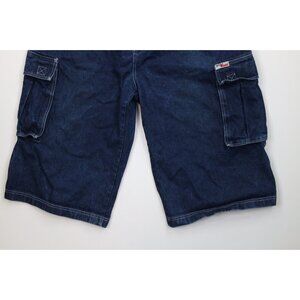 Vintage 90s Y2K Streetwear Mens 42 Distressed Baggy Fit Denim Cargo Shorts Blue