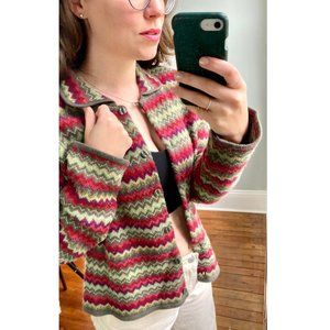 Vintage 90s Y2K Striped Cardigan Lambs Wool Button Up Cottagecore Sweater L