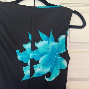 Vintage 90s Y2K Studio Soleil black and blue floral sleeveless dress with ruffles