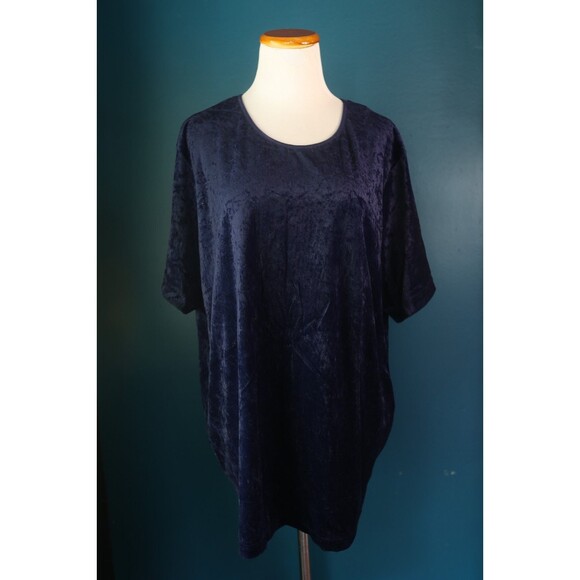 Vintage 90s Y2K TR Bentley Plus Midnight Blue Crushed Velvet Whimsigoth Top 2X