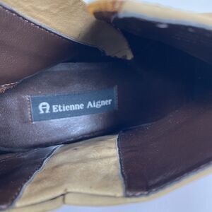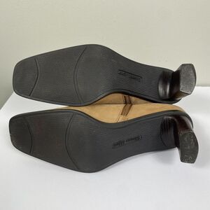 Etienne Aigner Vintage 90s Y2K Tan Square Toe Leather Heel Ankle Boots Sz 8.5 Western Hippie