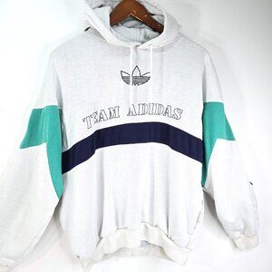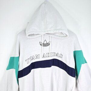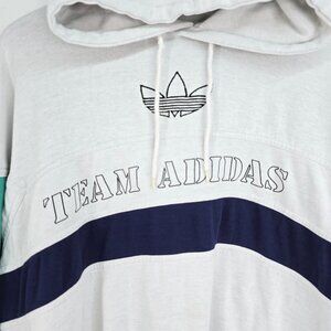Vintage 90s Y2K Team Adidas Light Grey Pull Over Baggy Sweatshirt Hoodie Jacket Kangaroo Pockets