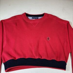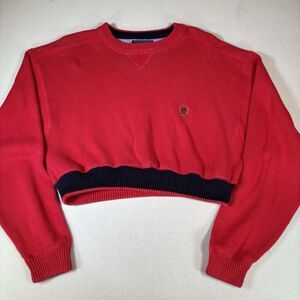 Vintage 90s Y2K Tommy Hilfiger Cropped Crew Neck Sweater Women’s Large Red Knit