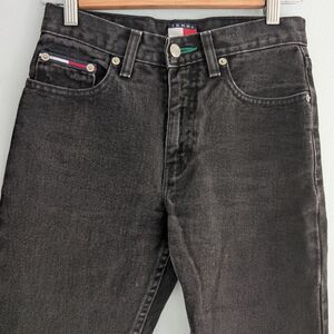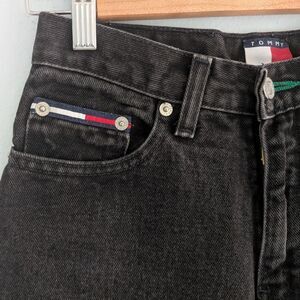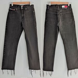 Vintage 90s Y2K Tommy Hilfiger Jeans Black Denim Cropped Distressed JRS Size 1