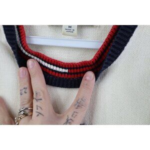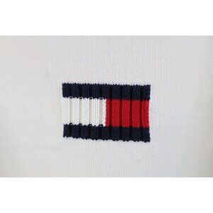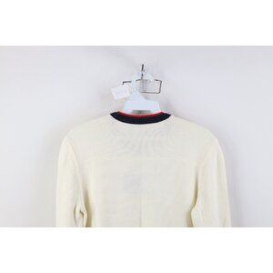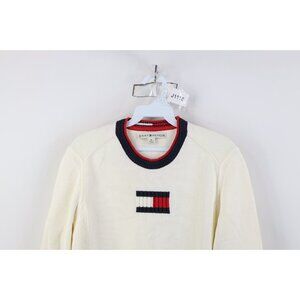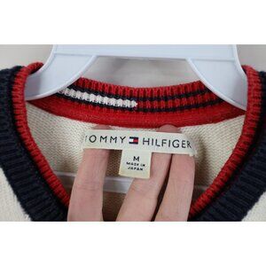 Vintage 90s Y2K Tommy Hilfiger Womens M Babydoll Center Logo Knit Sweater Cream