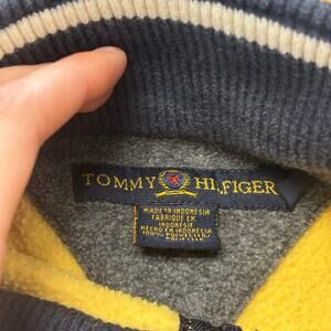 Vintage 90s Y2K Tommy Hilfiger Yellow Mens L Quarter Zip Fleece Sweatshirt Crest