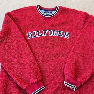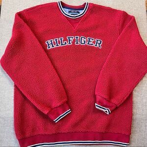 Vintage 90s Y2K Tommy Jeans Hilfiger Deep Pile Sherpa Fleece Pullover Crewneck