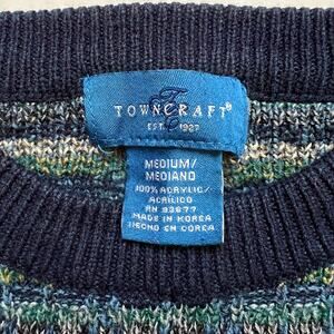 Vintage 90s Y2K Towncraft Striped Knit Pattern Knit Sweater Fall Academia M