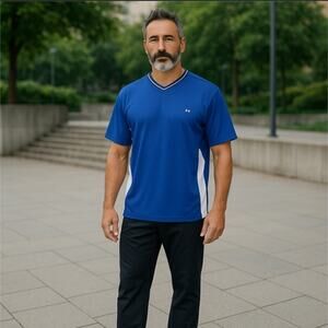 Athletic Ribbed Stripes along V Neck and Shoulders
