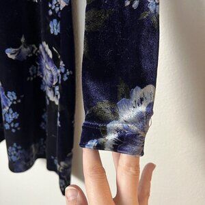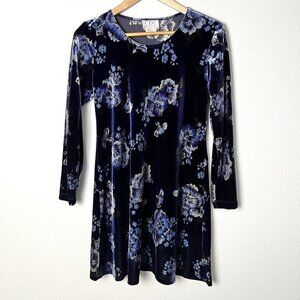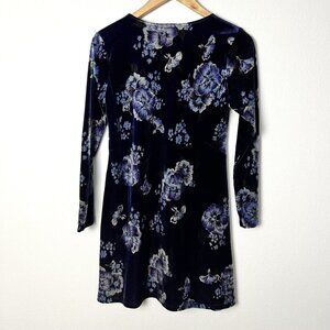 Vintage 90s Y2K Velvet Floral Mini Dress A-line Whimsigoth Romantic Size 4
