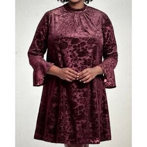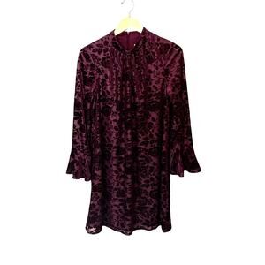 Vintage 90's Y2K Velvet Maxi Dress Size 14 Long Sleeve Burgundy Whimsygoth Fairygoth