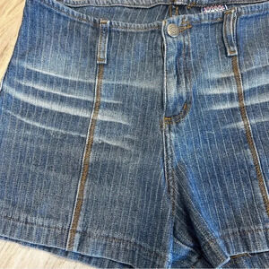 Amazing vintage 90s shorts by Watch LA! Amazing condition especially for their vintage age. These shorts are so cool with their pinstripe woven detail and slight whiskering.