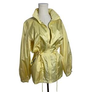 Vintage 90s Y2K Windbreaker jacket bright yellow floral MEDIUM / LARGE