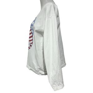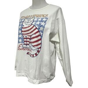 Vintage 90s Y2K Women’s Cat T Shirt Stars Stripes USA Flag Alore Cotton White L