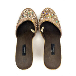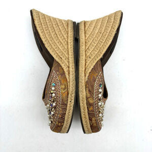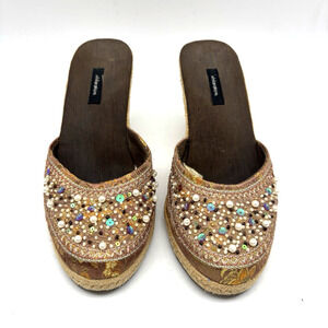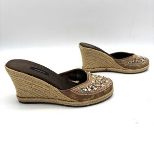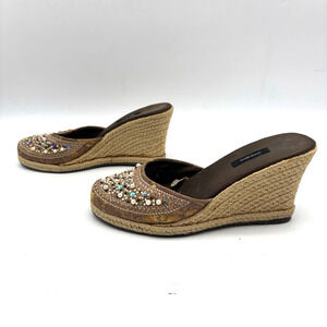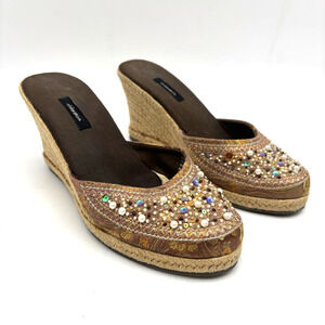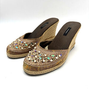 Vintage 90s Y2K Xhilaration Brown Satin Beaded Sequin Espadrille Wedge Heels 6
