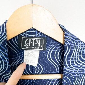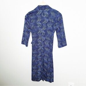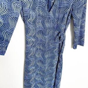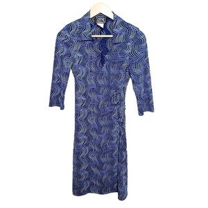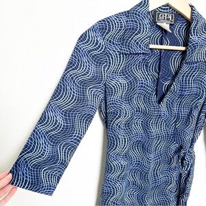 Vintage 90s Y2K squiggle print collared bodycon wrap style midi dress S M