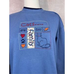Vintage 90s Y2K Embroidered Cat Crewneck Sweatshirt Kitty Size Medium