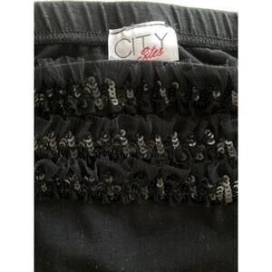Super cute vintage 90s Y2K era City Sites black square neck stretchy cropped cami with ruffled mesh tulle sequin accents. Tagged a vintage L. Will best fit a modern S/M. Cami is in great shape. No flaws to note. Made in USA. Skirt available in separate listing. Questions? Please ask. All sales final. Returns are not accepted. No refunds. Thanks so much for looking.