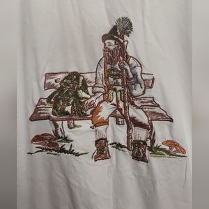 Vintage 90s Y2k Embroidered Nordic Mushroom White T-Shirt Unisex Size Medium 🍄
