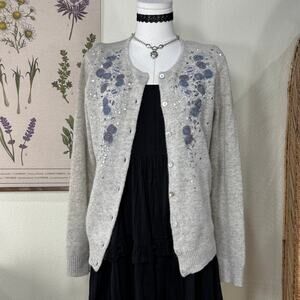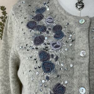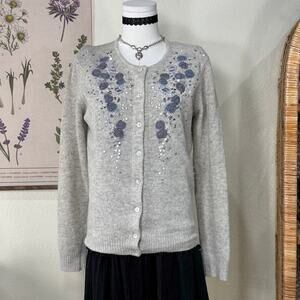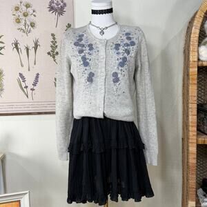 Vintage 90s Y2k Floral Embroidered Cardigan Sweater Coquette Dolly Grandma M