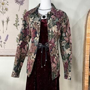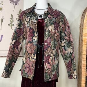 Vintage 90s Y2k Floral Leaves Tapestry Jacket Whimsigoth Grandma Fairy Grunge M