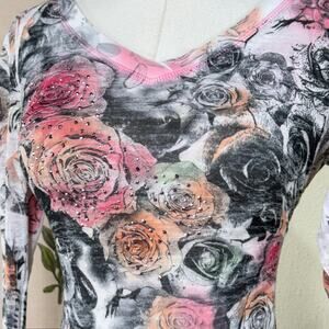 Vintage 90s Y2k Floral Rhinestone Long Sleeve Top Fairy Grunge Trashy McBling L