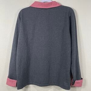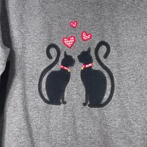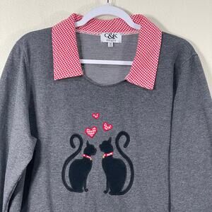 Vintage 90s Y2k Gray Red Gingham Collared Black Cats Hearts Novelty Sweatshirt M
