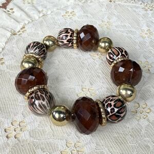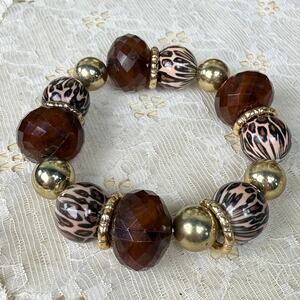 Vintage 90s Y2k Leopard Gold Beaded Stretch Bracelet Boho McBling Gyaru Gal