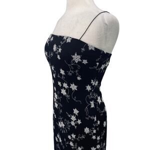 Vintage 90s Y2k Sparkle Beaded Floral Column Gown Square Neck Black Silver Small