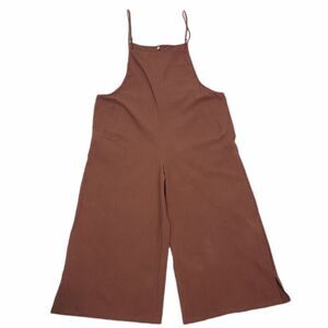 Vintage 90s YESNO Brown Jumpsuit Wide Leg Pockets Spaghetti Straps Women Large