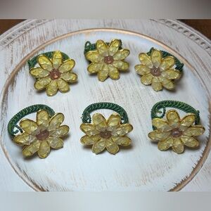 Vintage 90s Yellow Floral Napkin Rings (1) Set of 6 Spring Summer rare find