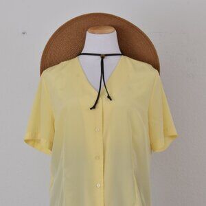 Vintage 90s Yellow Polyester Embroidered Blouse | size Large