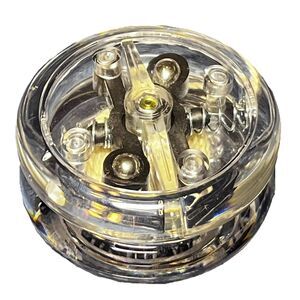 The clear design of the. yoyo lets you see the toy's working mechanisms.