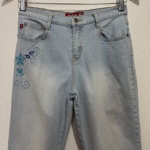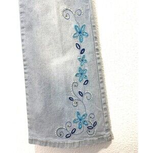 Vintage 90s Zana Di Jeans Flare Embroidered Flower Bell Bottoms Y2K Hippie Sz 16