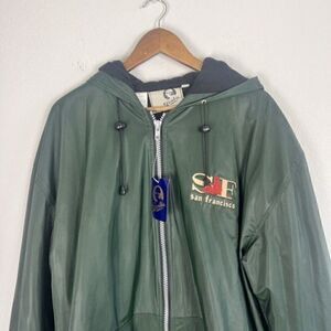Vintage 90s Zip Up Raincoat San Francisco Embroidered Mens Fleece Lined Green M.