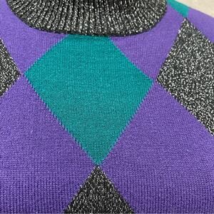 Vintage 90s argyle metallic accent sleeveless mock neck sweater Size Small