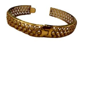 Elegant vintage 1990’s gold tone bangle bracelet Intricate design gives a textured look. Measures 8 inches. Lightweight. Not marked. Perfect for any occasion. Euc