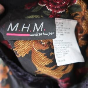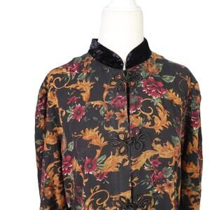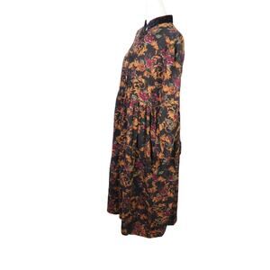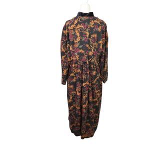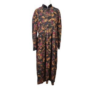 Vintage 90s black, tan marigold, and burgundy red floral baroque midi dress