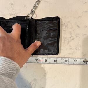 Vintage 90s black leather trifold biker chain wallet skull design goth grunge