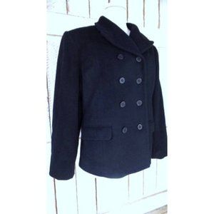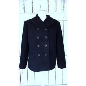 Vintage 90s black wool double breasted pea coat jacket/black wool coat/nautical sailor pea coat/Kristen Blake/large